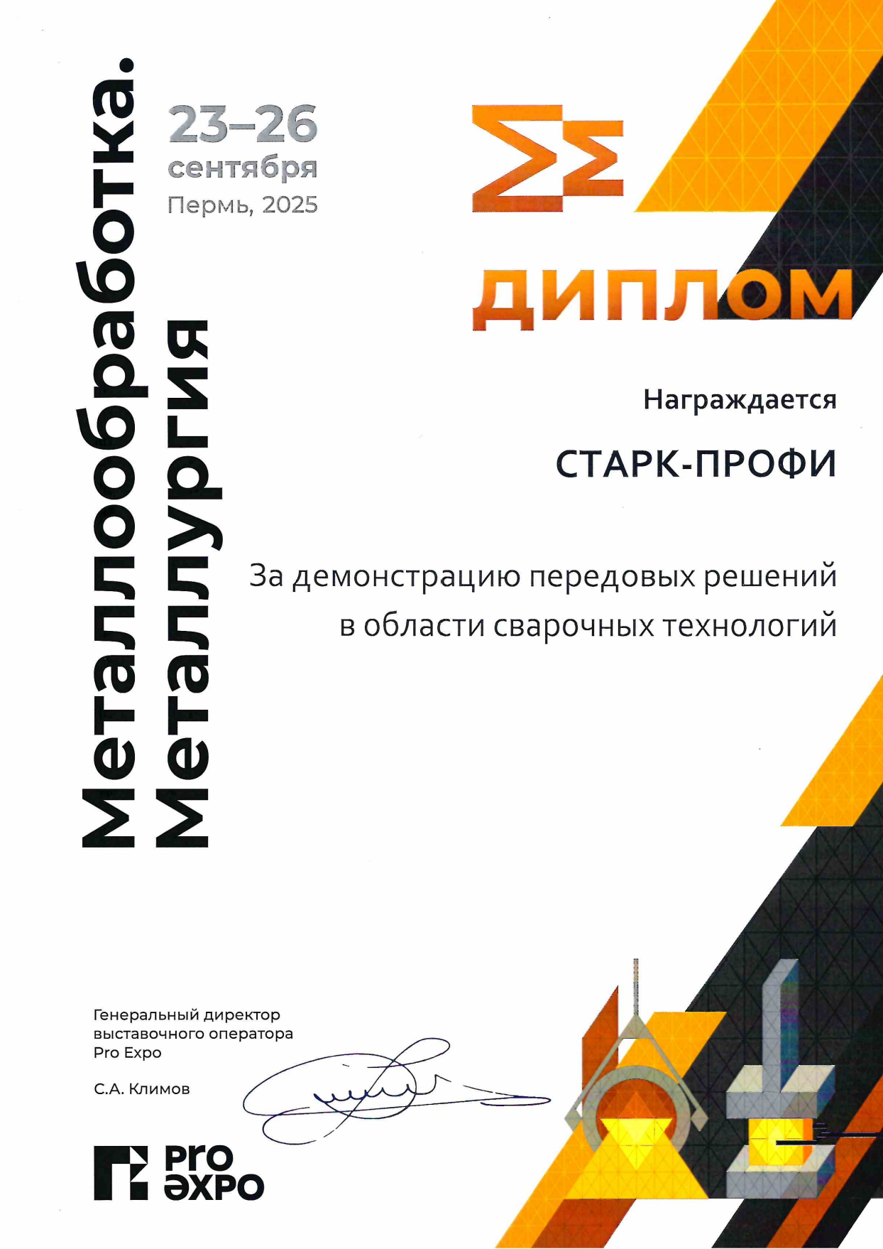 Компания «Старк-Профи» приняла участие в специализированной выставке «Металлообработка. Металлургия», которая проходила с 23 по 26 сентября 2025 года в Перми.