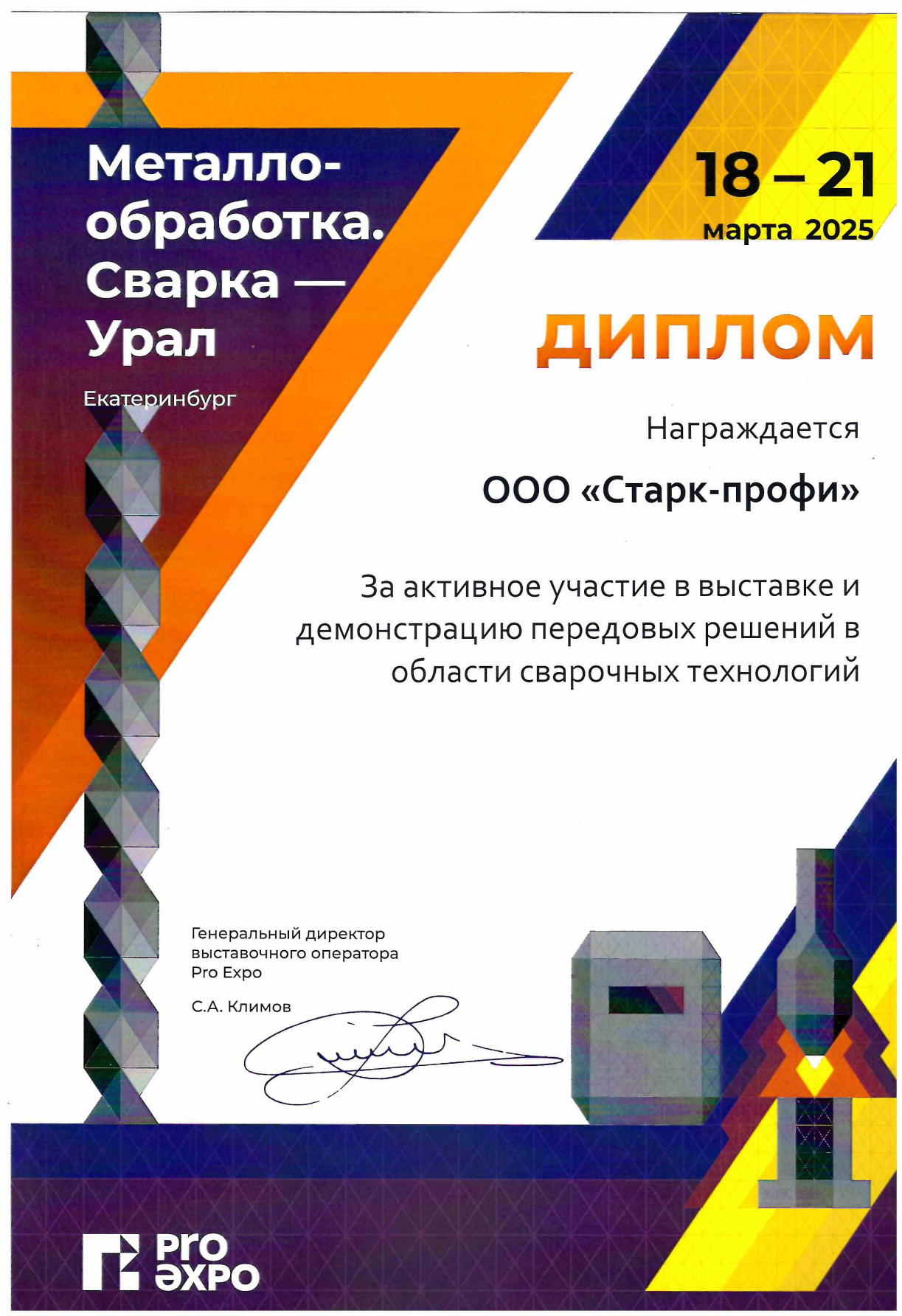 Компания «Старк-Профи» приняла участие в выставке «Металлообработка. Сварка - Урал 2025», которая проходила с 18 по 21 марта в Екатеринбурге.